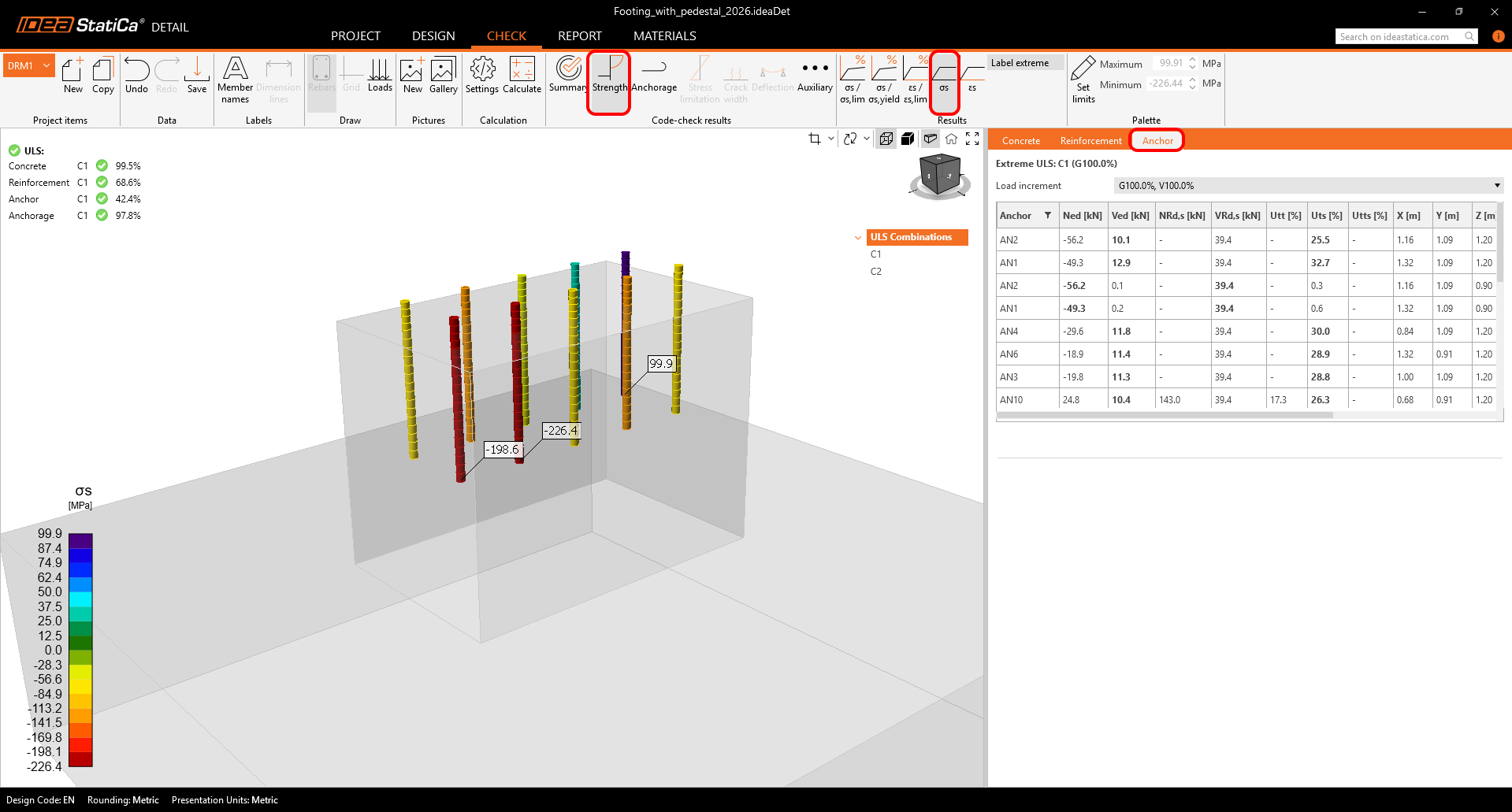 The first detailed check is focused on the Strength - Concrete. If you utilize the scalable stress palette, the critical spot will be easy to detect.