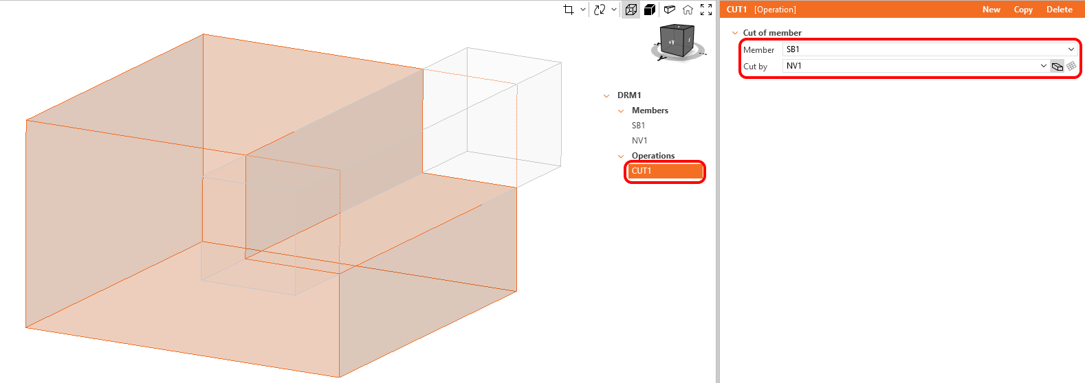 Copy the operation CUT1 and set NV2 as the cutting attribute.
