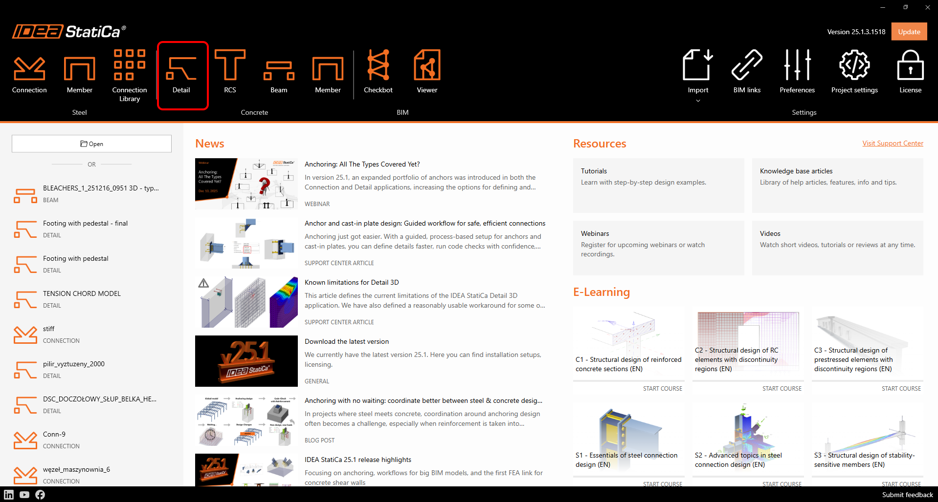 Start by launching the IDEA StatiCa application. In the main window of IDEA StatiCa, open the Detail application to define a new project.
