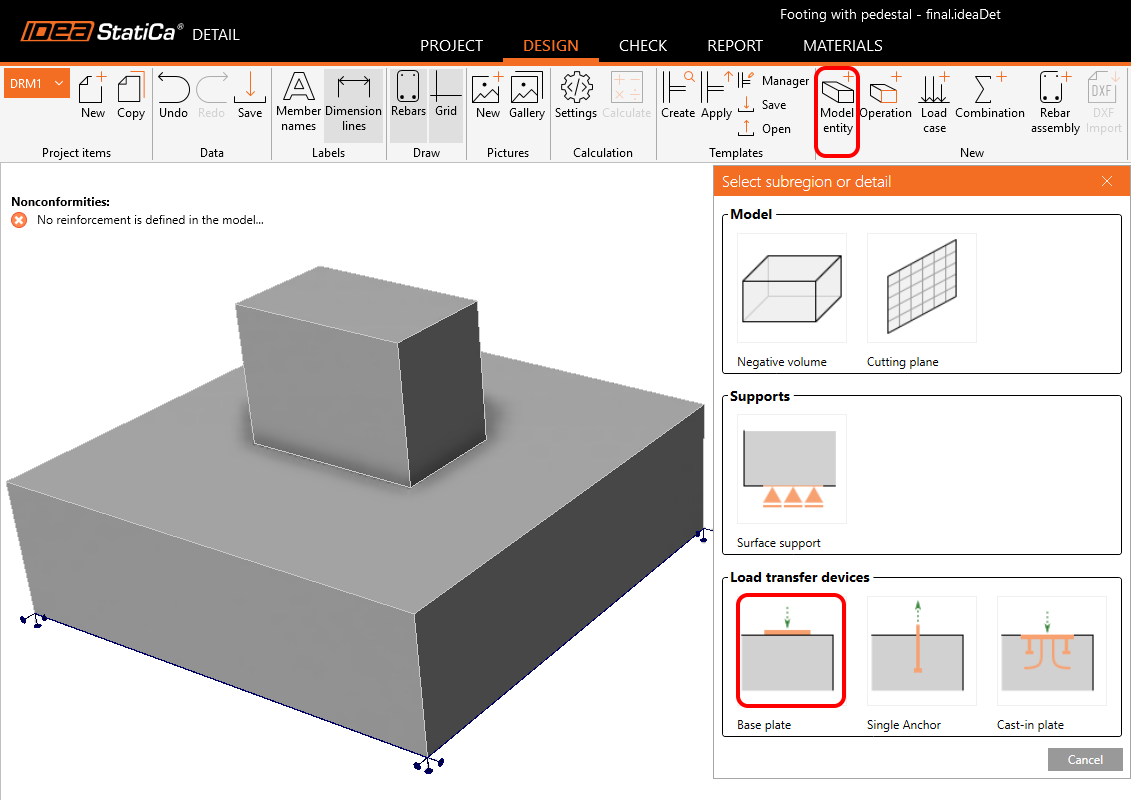 The ultimate goal of this tutorial is to introduce the modeling approach and key principles required for successful design and code-checking of a footing with a pedestal and cast-in-place washer plate anchors. After completing, you will be able to design this type of structural element confidently.