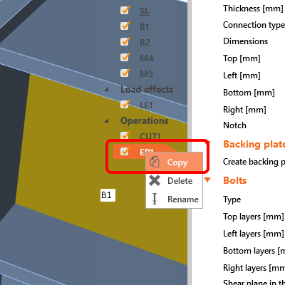 Copy operation EP1. With the right mouse button, click on the EP1 and choose Copy.
