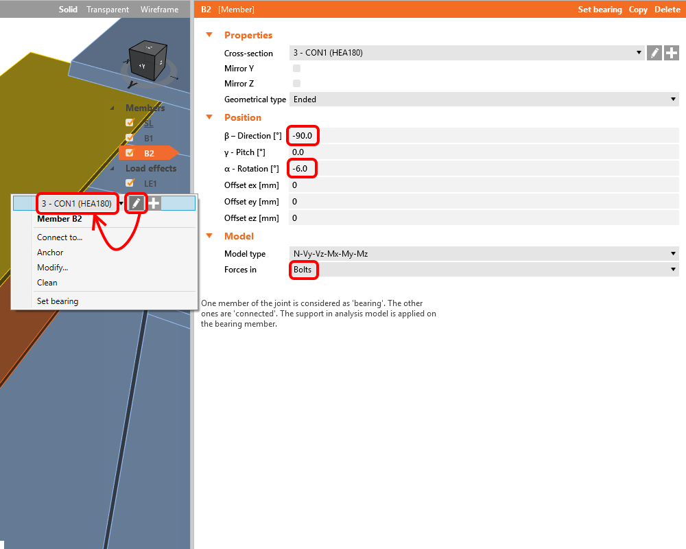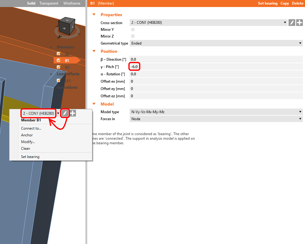 Start with Right-click on the beam B1 and set the cross-section to HEB280 from the library.