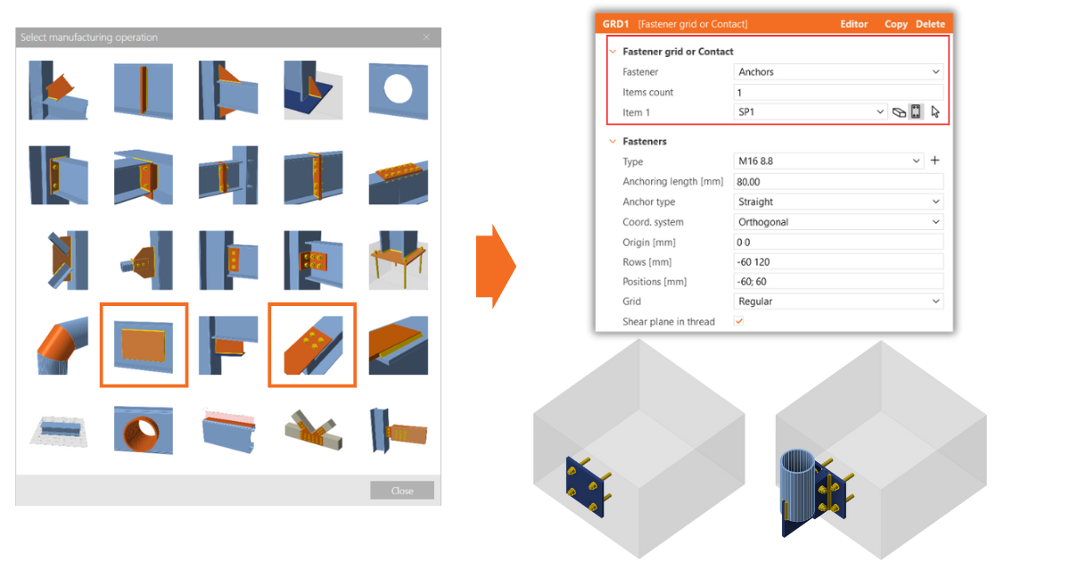 This removes the need for time-consuming workarounds involving stiffening plates, manual cuts, or multiple block simulations, and ensures consistent, traceable anchoring behavior across design codes.