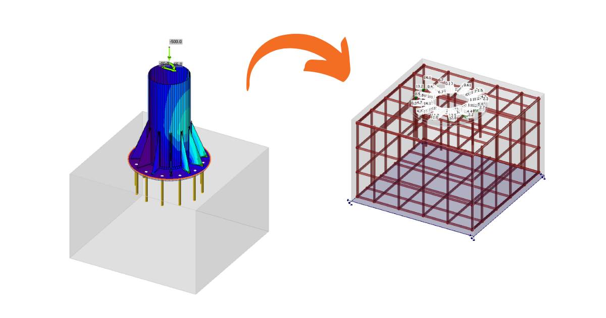 The steel code checks remain valid, and users can export the model to Detail for advanced concrete verification. The software automatically redistributes forces according to anchor stiffness, compression subsoil stiffness, and load paths, allowing engineers to investigate and validate critical load transfer conditions manually.