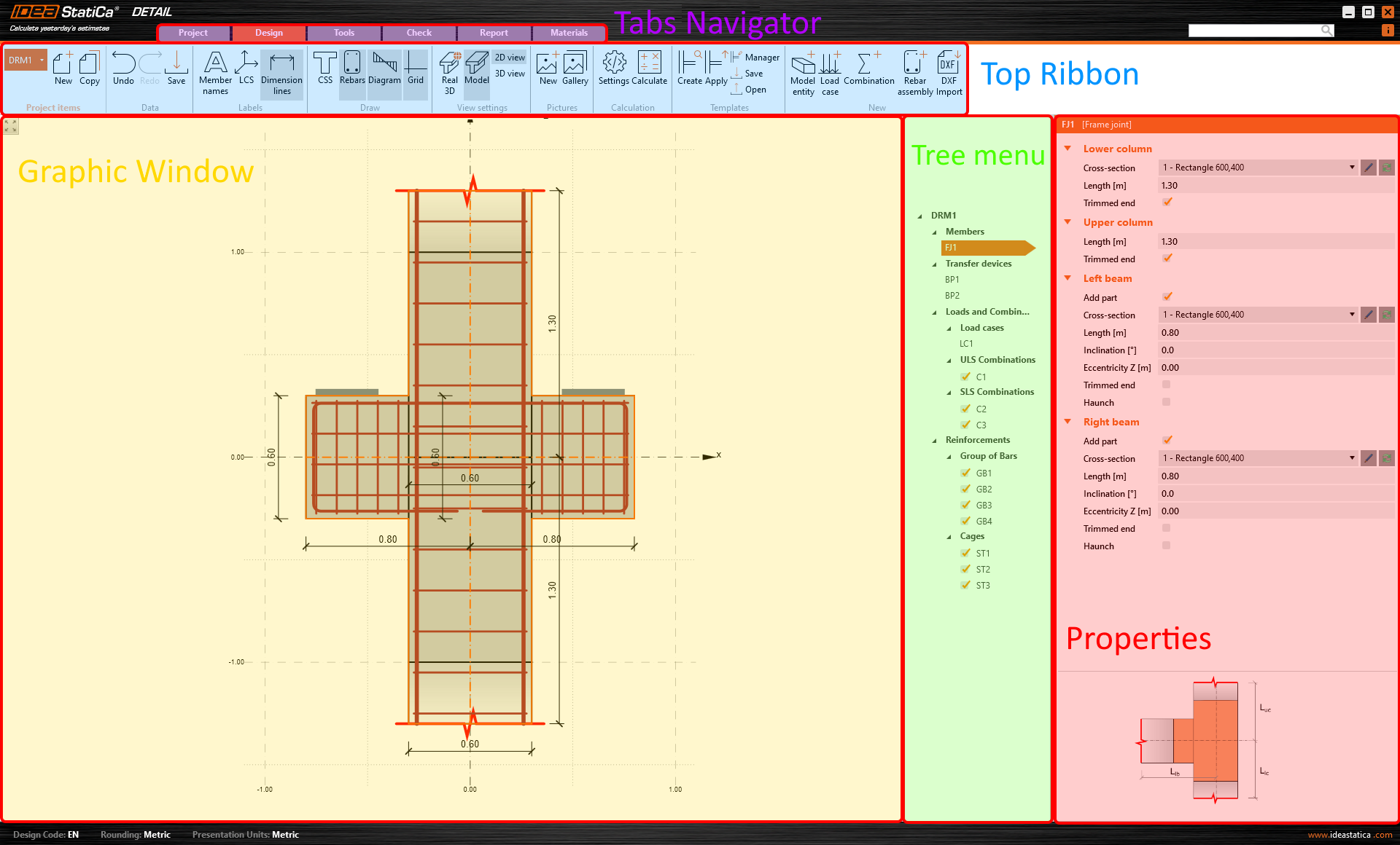 In this section, you enter all the data. The layout of the Properties section varies according to the specific step from the Top Ribbon.