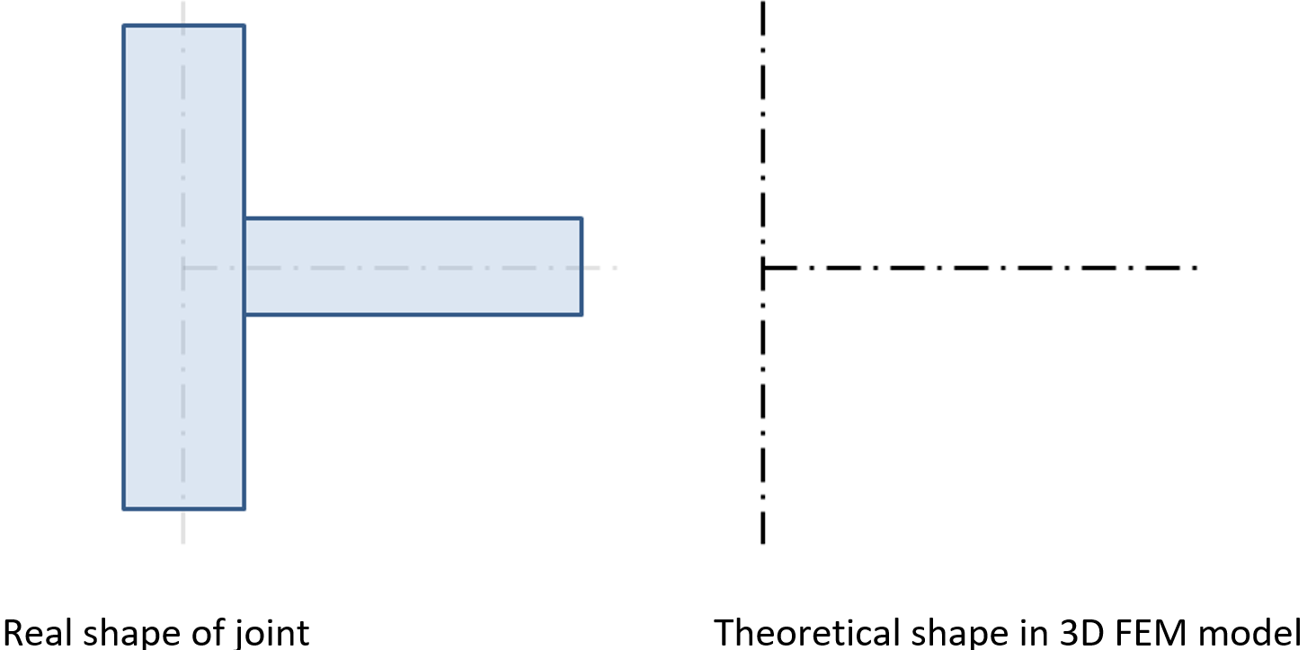 The real shape of a joint is not known in the structural model. The engineer only defines whether the joint is assumed to be rigid or hinged.