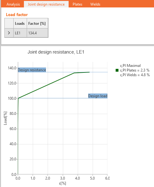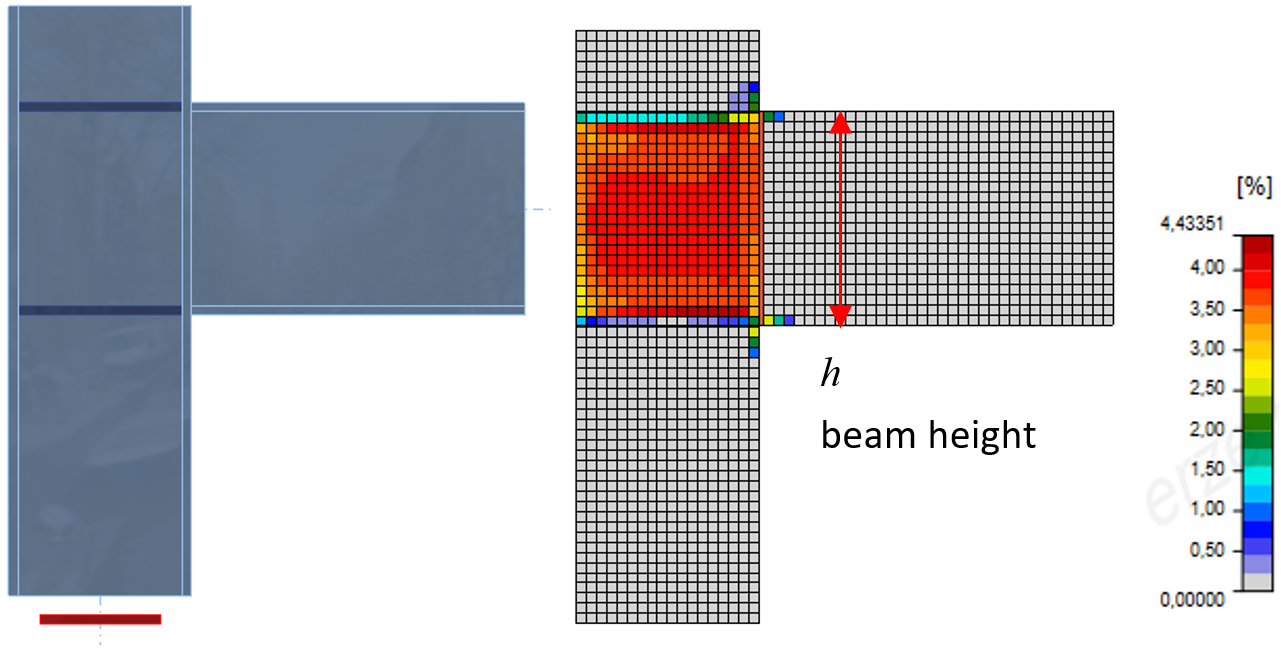 Weld sizing with overstrength automatically provides welds that are much stronger than the connected plate. Overstrength factor is specified Settings → Design → Autodesign → Weld sizing. The default value of 1.4 is taken from EN 1993-1-8 – 6.2.3 (5) to form a plastic hinge.