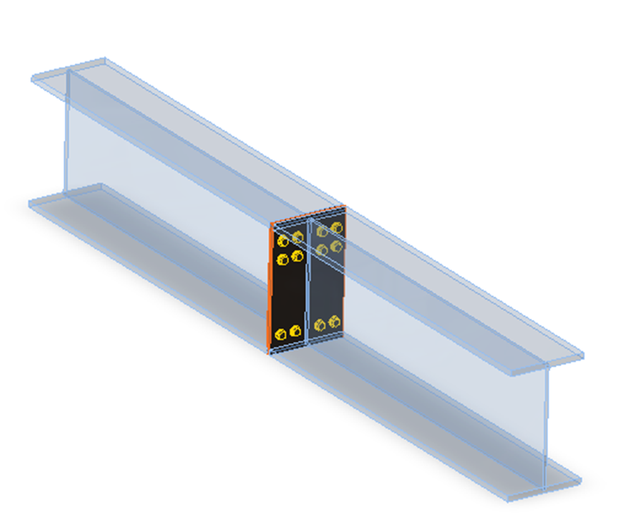 The segment ends at the joint are not connected. The connection must be modeled. So-called manufacturing operations are used in the CBFEM method to model the connection. Manufacturing operations are especially: cuts, offsets, holes, stiffeners, ribs, end plates and splices, cleats, gusset plates, and others. Fastening elements (welds and bolts) are also added.