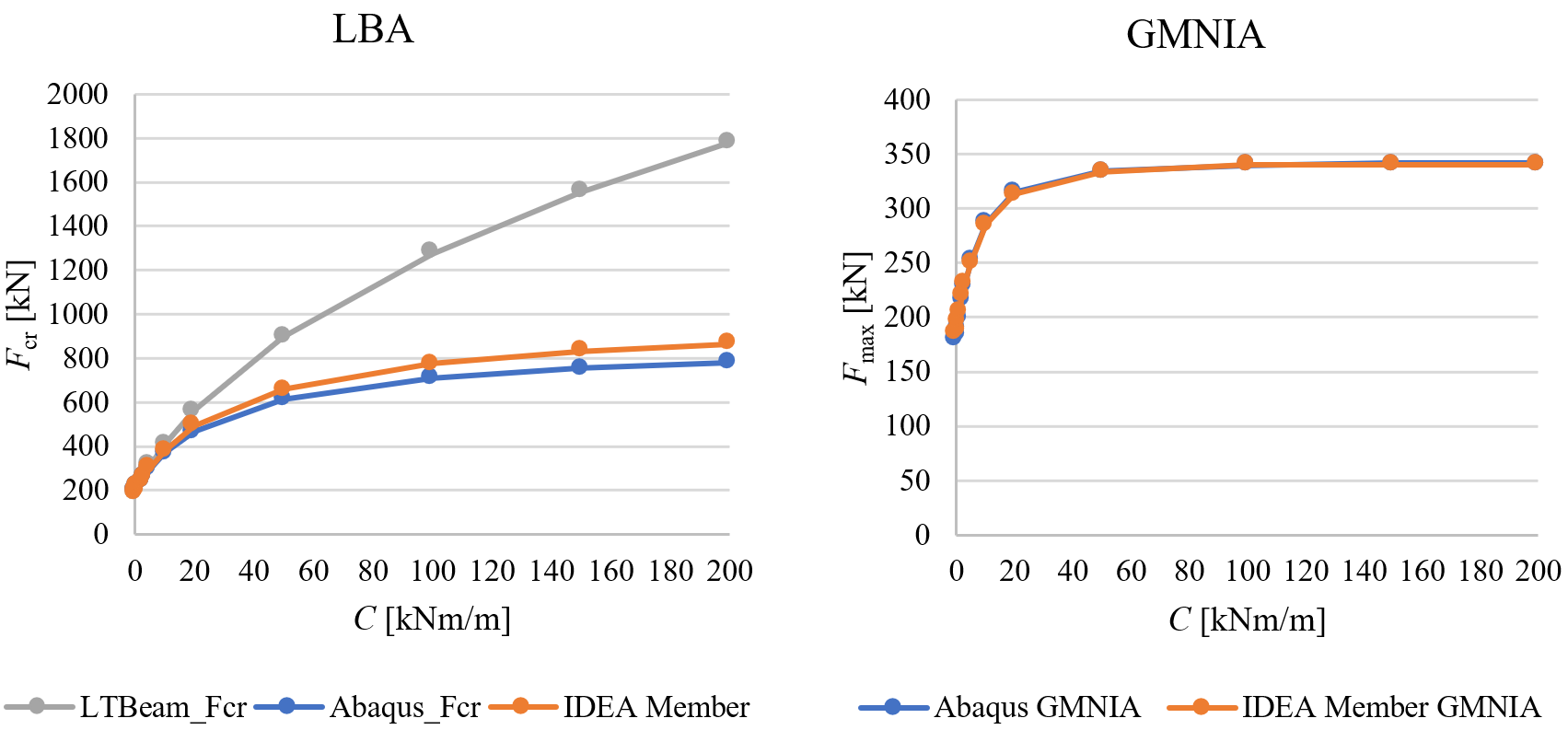 In the case of connections, the geometrically nonlinear analysis is not necessary unless plates are very slender. Plate slenderness can be determined by eigenvalue (buckling) analysis. For the limit slenderness where geometrically linear analysis is still sufficient, see Chapter 3.9. The geometrically nonlinear analysis is not implemented in the software.