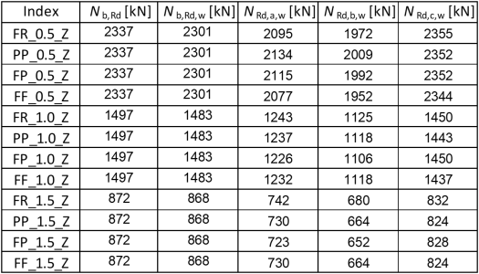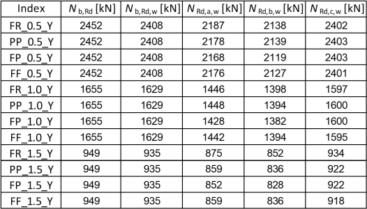 All cases are designated in the following manner: “FR_0.5_Y”, where “FR” indicates boundary conditions, “0.5” the relative slenderness, and “Y” the buckling axis.