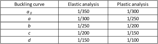 Tab. 1: Design value of initial bow imperfection e0/L for members