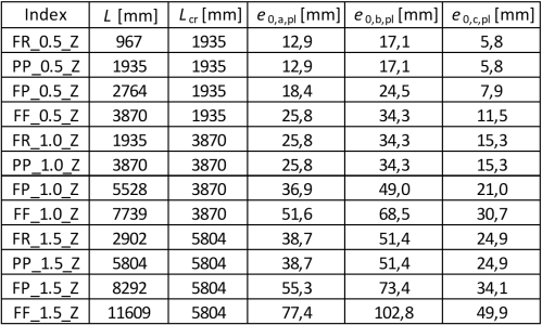 Tab. 4: Resulting initial imperfection values – axis z-z
