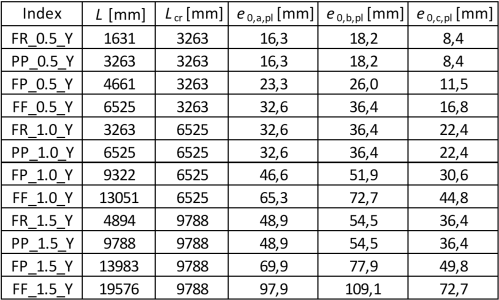 Tab. 3: Resulting initial imperfection values – axis y-y