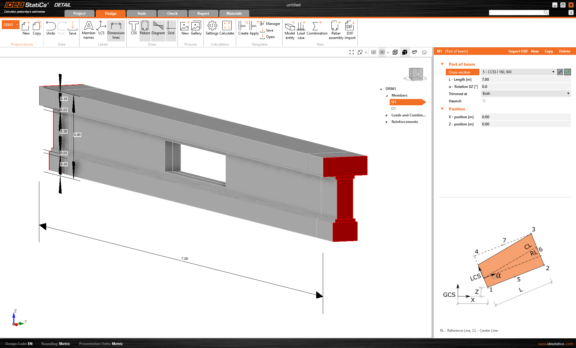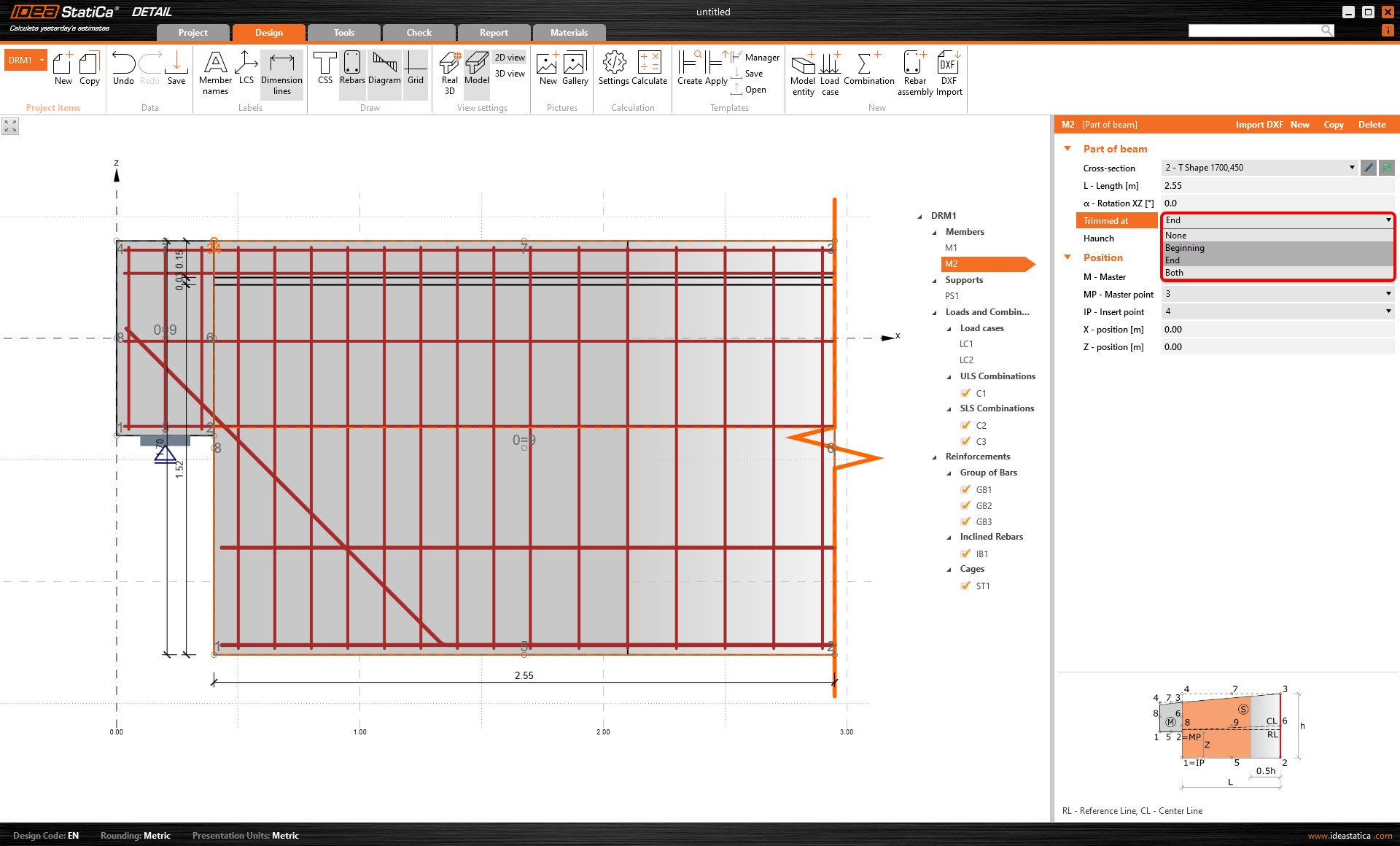Let's say you have already designed and checked the reinforcement in the B-regions, and you want to focus on the discontinuity regions of the beam only, so you won't spend additional time modeling the whole beam. No problem! In this case, it is recommended to model the trimmed beam.