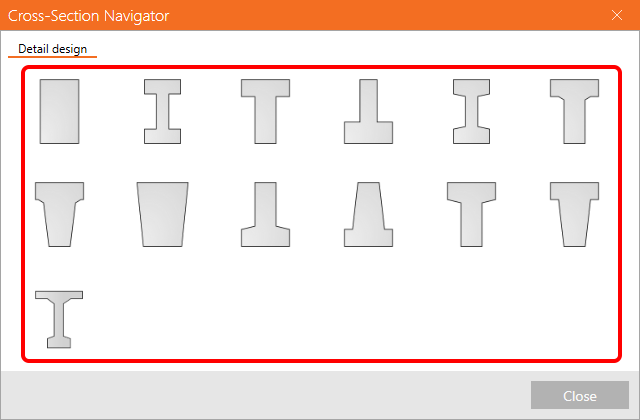 When modeling a beam, you can select one of the pre-defined cross-sections from the library.