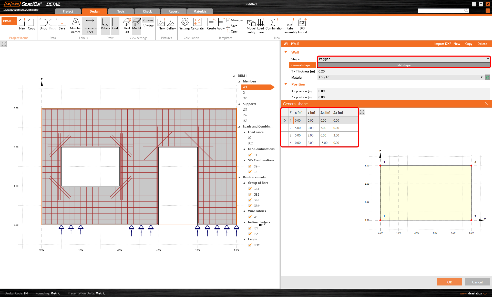 In case of having a complex shape of the structure or already finished drawings, you can use the import from the DXF file functionality to have the geometry defined quickly.