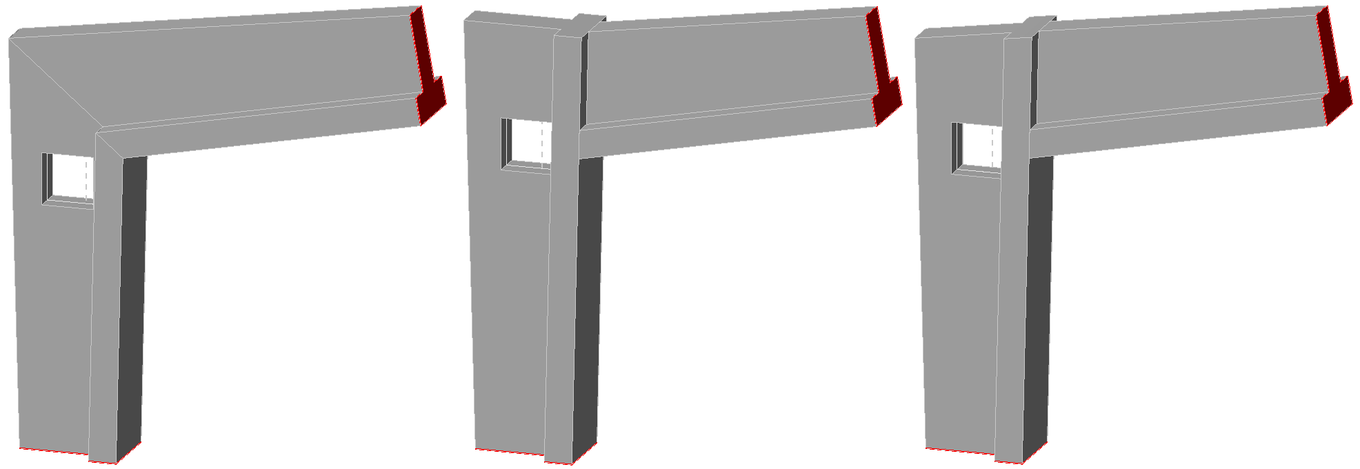 The whole model can be made up of several separate elements. The software will automatically connect them. The joint between the walls must be free of gaps. Moreover, it is possible to define different thicknesses for each wall element used in the project. See the example in the image below.