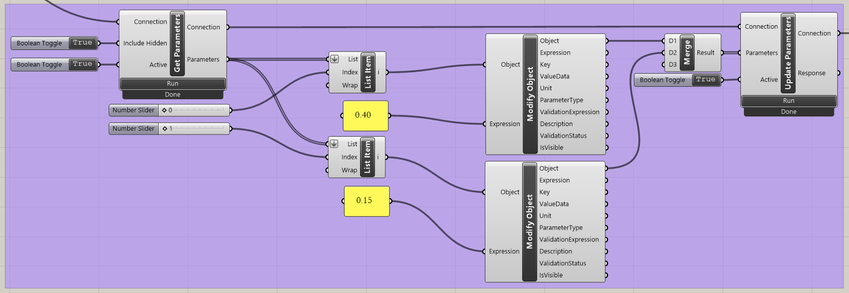 Grasshopper - modify parameters and run the calculation