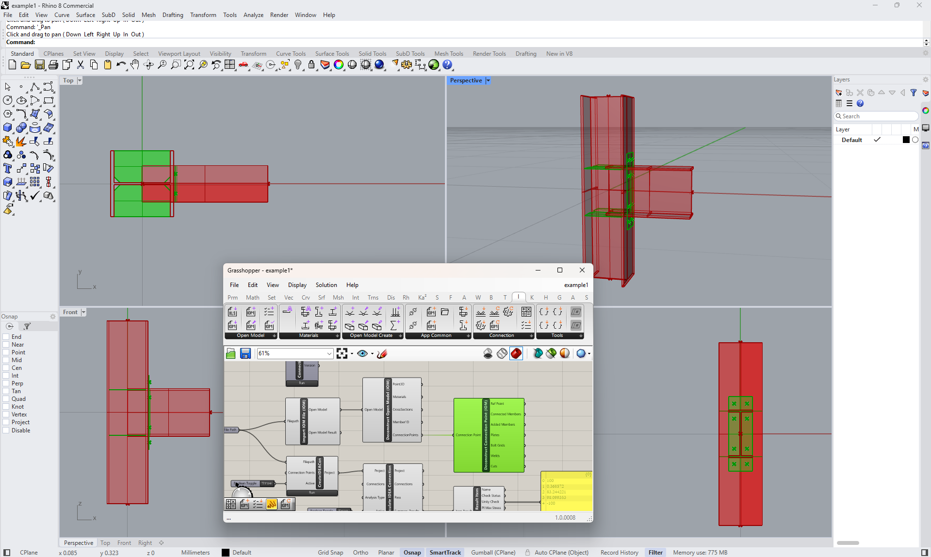 Grasshopper - Import the IOM file, display the joint in Rhino, and see the calculation results
