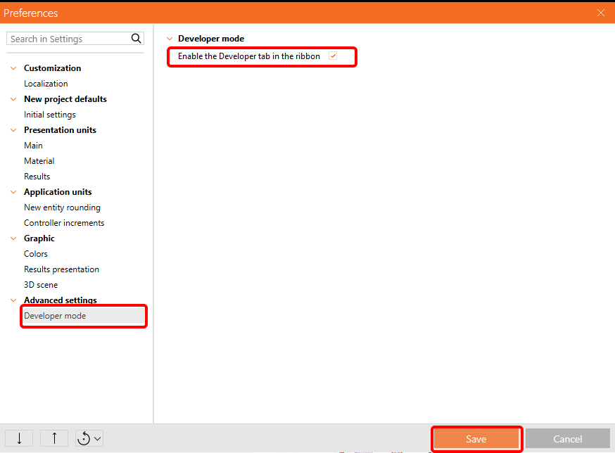 To be able to work with parameters, it is necessary to enable the Developer tab in Preferences / Advance Settings: