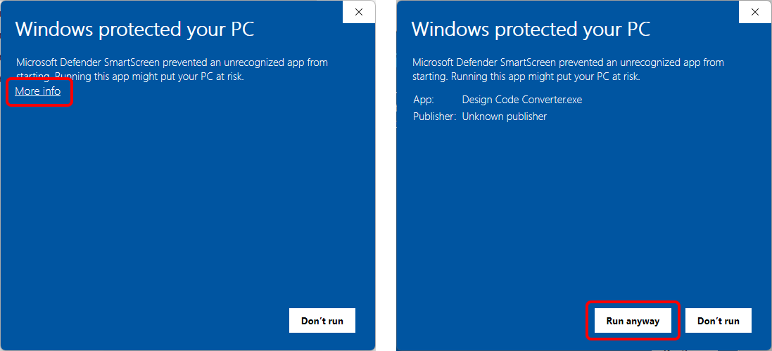 In case your Windows user settings don't let you run the .exe file, click More info and then Run anyway to open the tool, or ask your IT admin for help.