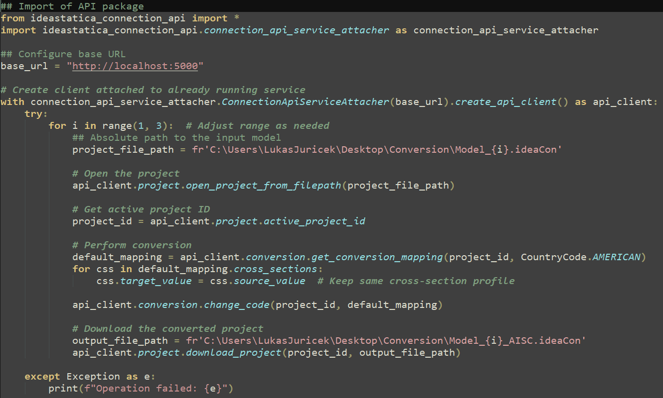 The API is open, and broad options are available for converting single or multiple Connection project files into different design codes and national standards.