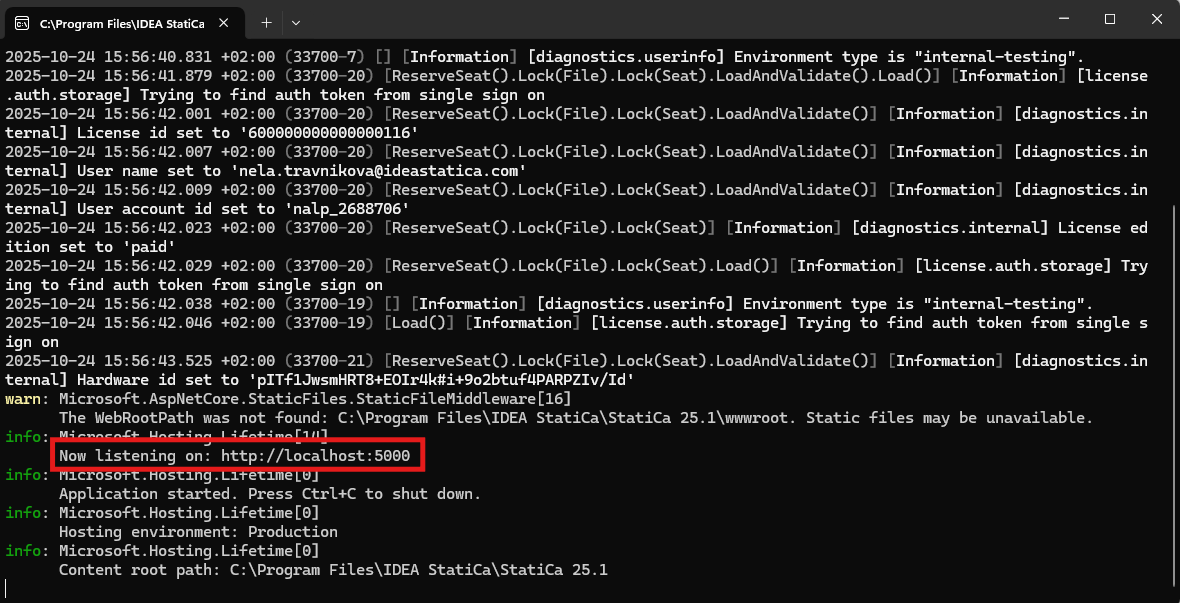 - Manually run the API using the file IdeaStatiCa.ConnectionRestApi.exe from the IDEA StatiCa installation folder