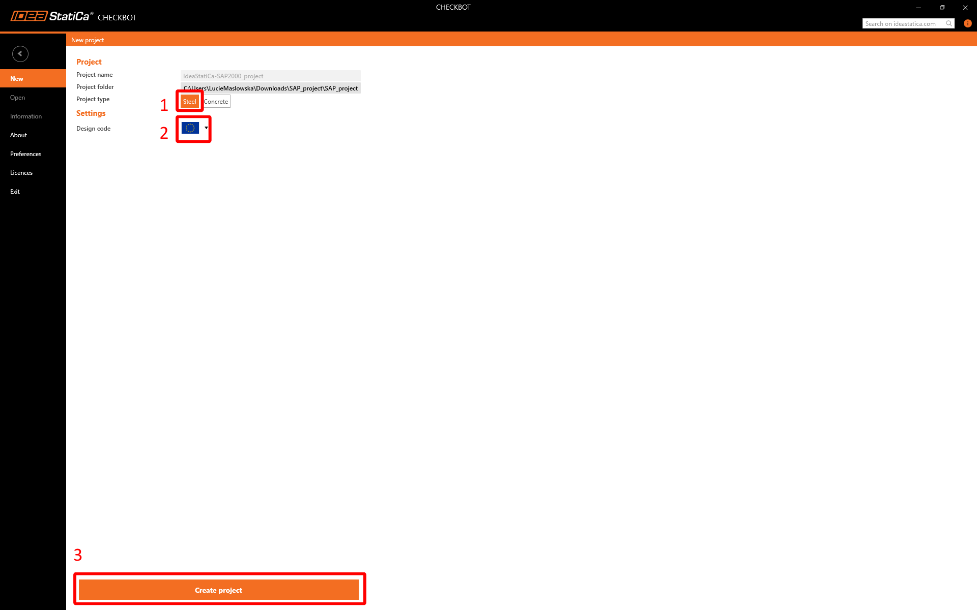 When you create a new project in Checkbot, a folder containing data for IDEA StatiCa models is created next to the original CAD/FEA project folder/file.