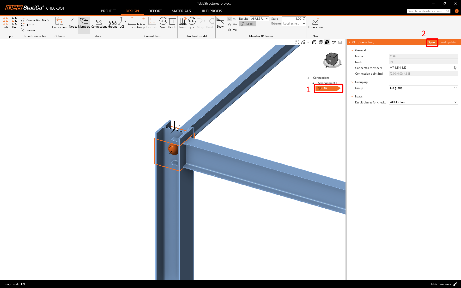 Keep your connection model imported from Tekla Structures open (you can open it again any time in the Checkbot in Tekla Structures).