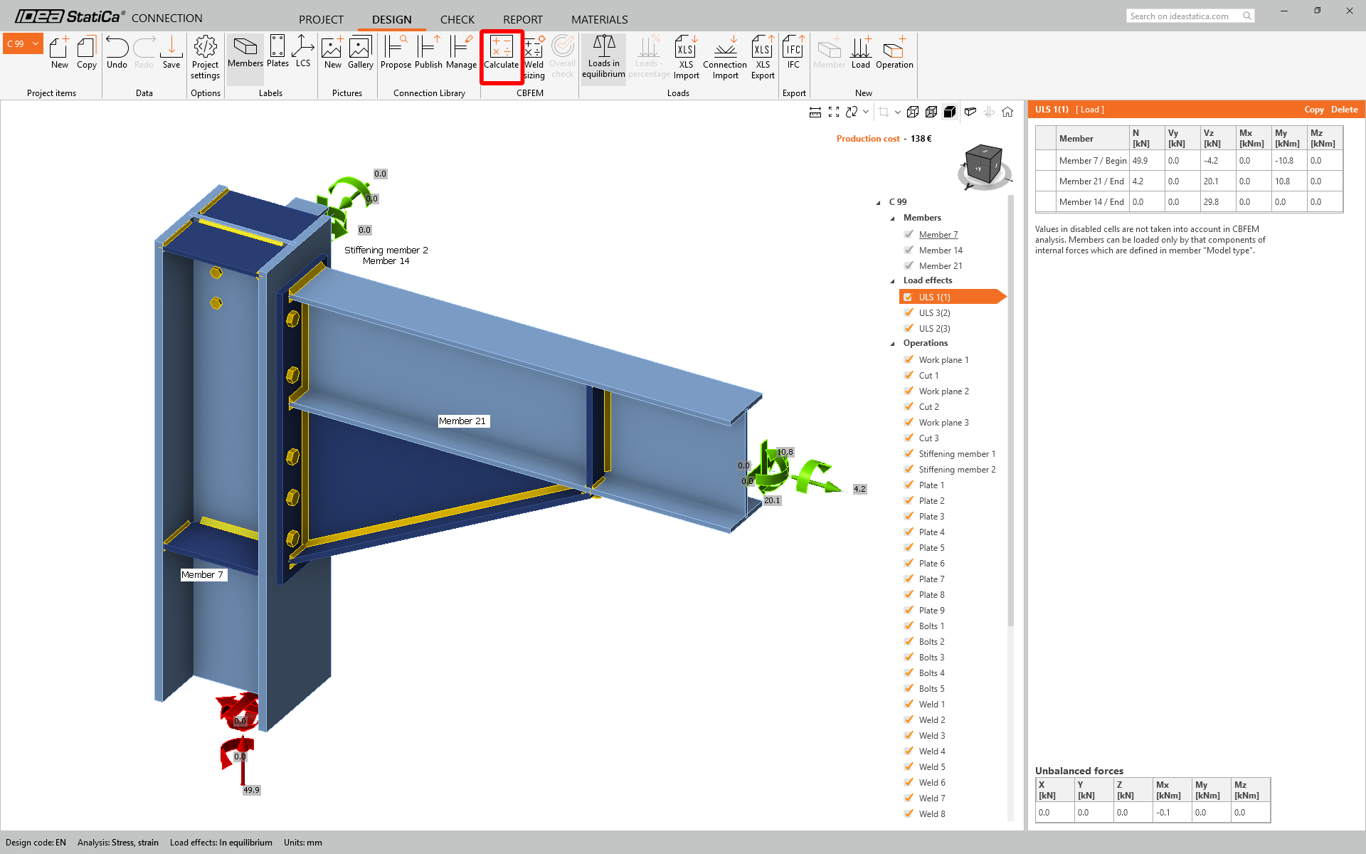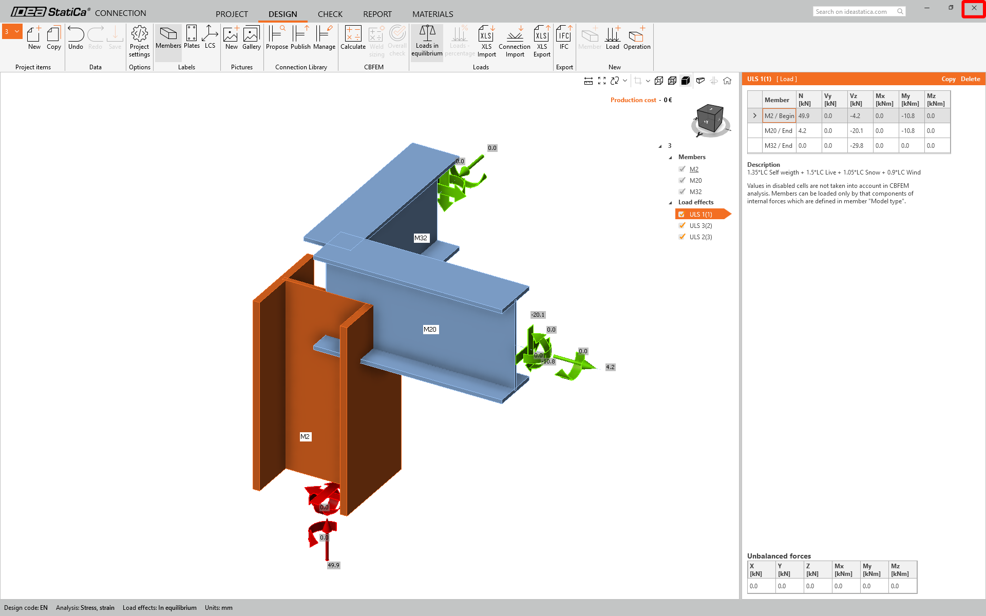 All members, loads, cross-sections, etc. were added automatically. Save and close the IDEA StatiCa Connection app and follow the next steps.