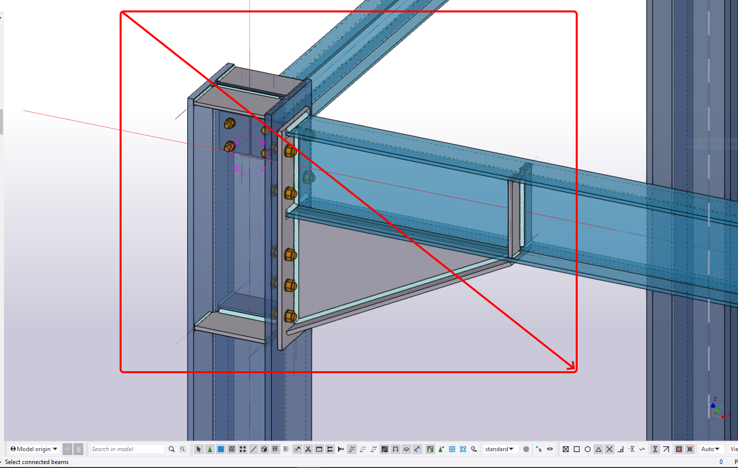 At last, select all the remaining entities of the connection such as plates, bolts, and welds, and confirm with the spacebar.