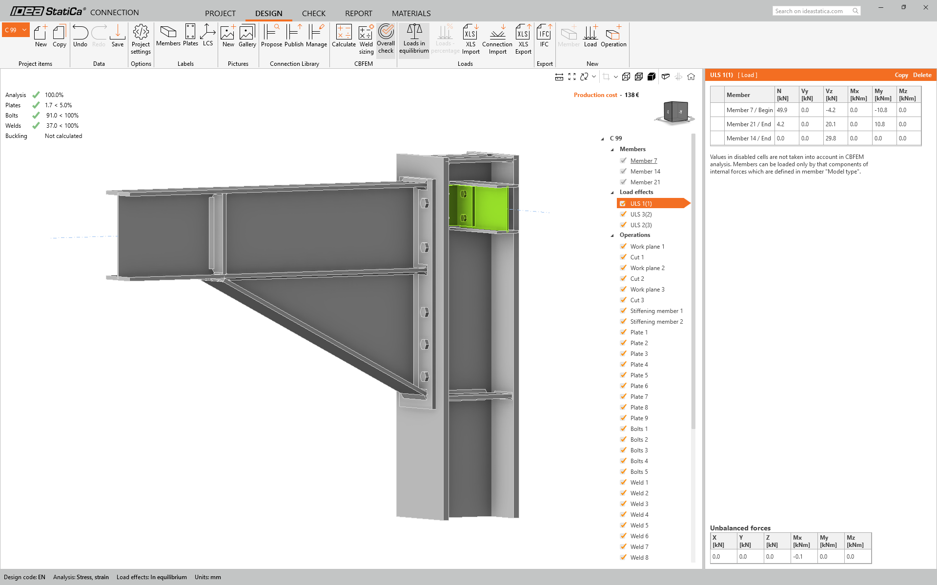 If needed, you can now modify further the connection model (change settings, add some operations, etc.). However, we recommend that you do not do this and make adjustments to the source software models and then synchronize them in Checkbot to update the imported models in IDEA StatiCa.