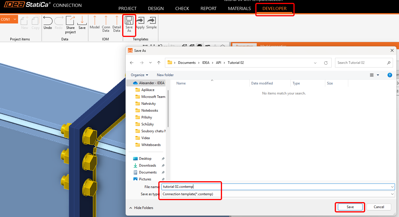 Now, go to the Developer tab and save it as a template with the name tutorial 02.contemp. We will use it in the next tutorial.