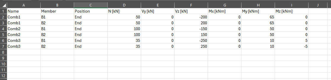 As a next step, prepare an Excel sheet with loads we want to import into the .ideaCon file. You can download it at the bottom of this page.