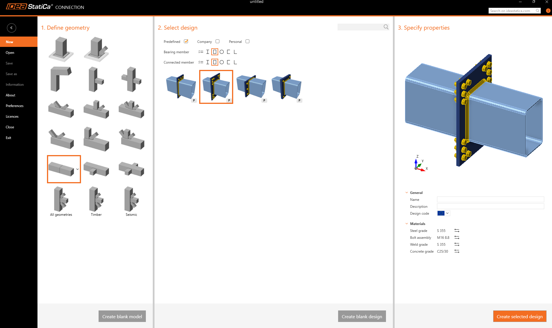 First, create a joint of two hollow cross-sections RHS 300/200/8 and change the parameters according to the following pictures.