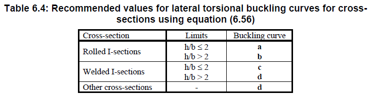 - Or if the member is predominantly bent and the main failure mode is lateral-torsional buckling, and use Table 6.4.