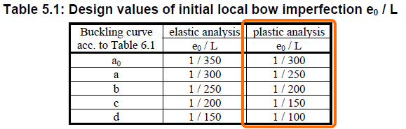 For instance, in Eurocode, it is described in EN 1993-1-1, Cl.5.3.2 (3). The imperfection amplitude e0 is calculated in Table 5.1, where the plastic analysis should be used.