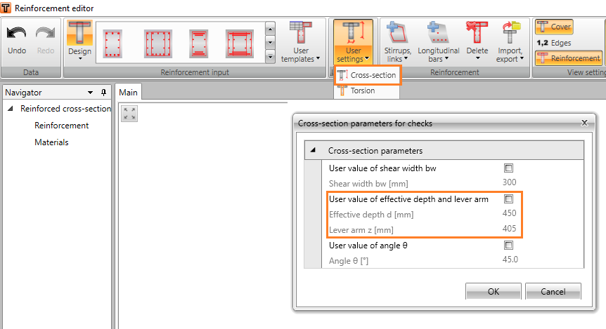 In this case, we recommend using the user-defined value of z. This value can be for example set as the distance of main layers of rebars (compressed layer and tensioned layer)  in the Reinforcement editor -> User settings -> Cross-section.