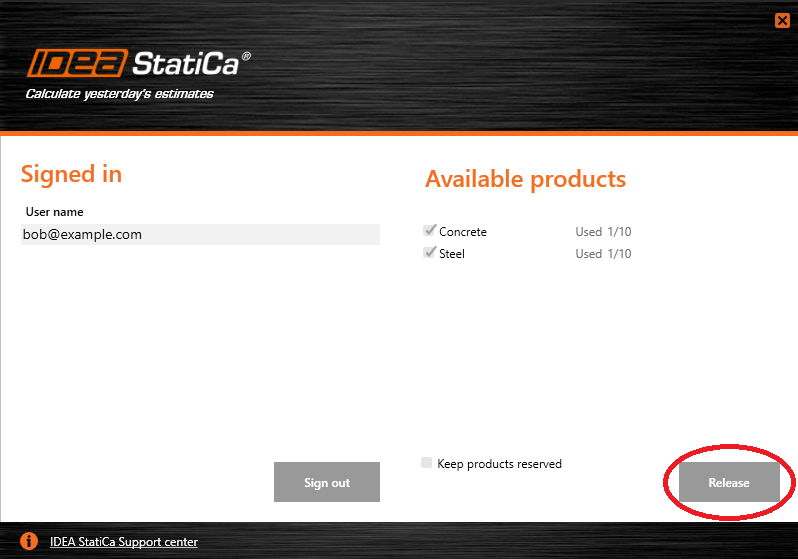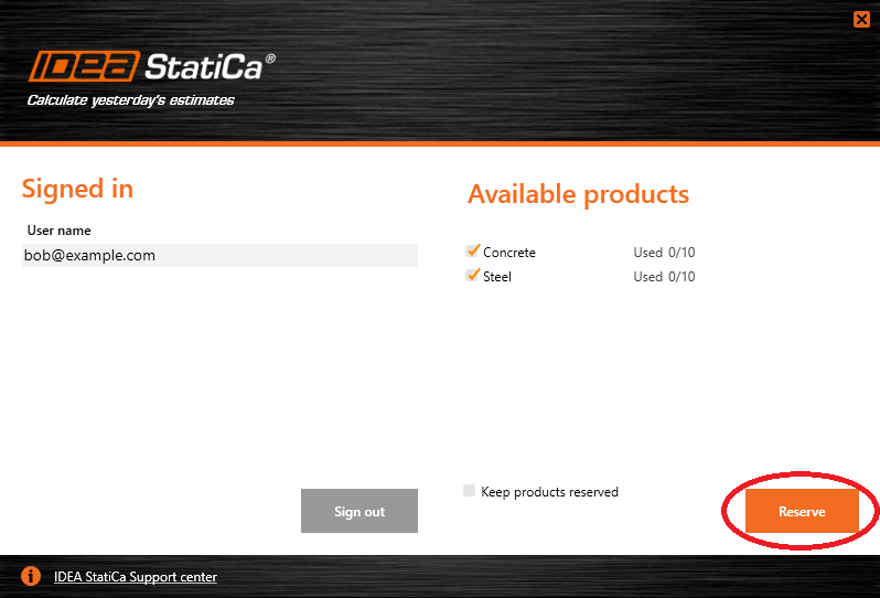 IDEA StatiCa allows for efficient usage of purchased products in your office. If your organization has, for example, licenses for steel and concrete applications, you can select which group of products you want to use. If you do so, then any time you Sign in, you will block only selected license products, leaving the rest for your colleagues.