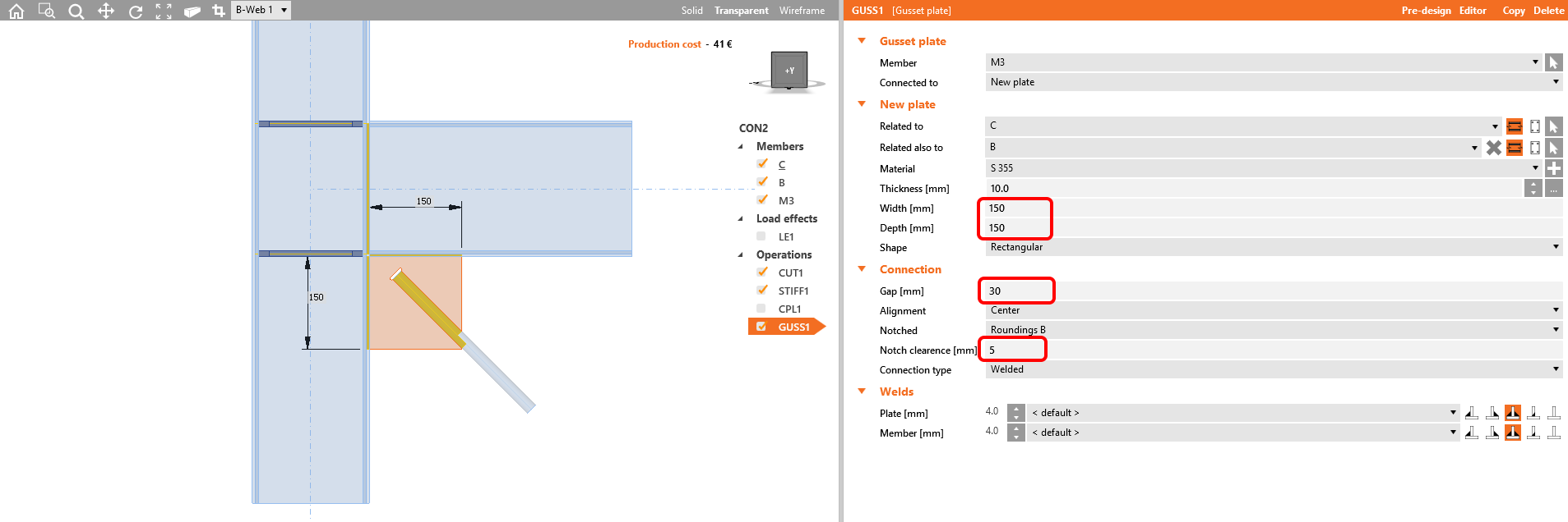 The rod cross-section is dedicated mostly to tension elements. It can be found in the library of profiles; nevertheless, its applicability is limited to two manufacturing operations only: the connecting plate and the gusset plate.