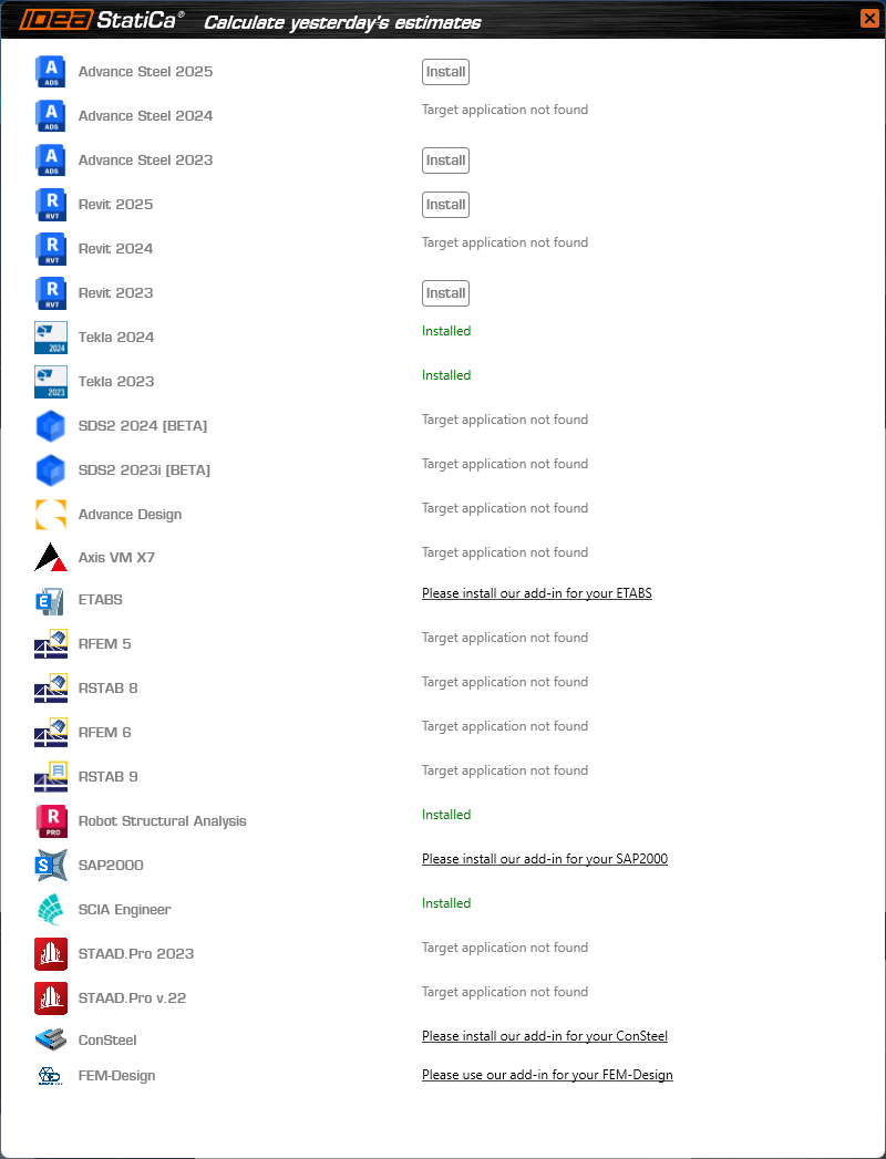 3) If you have any of the supported FEA or CAD software installed on your machine, you can install the IDEA StatiCa plugin during the installation.