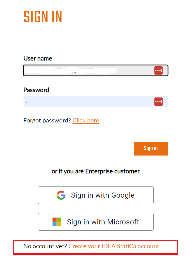 Click "No account yet? Create your IDEA StatiCa account." and complete the form on the next page.