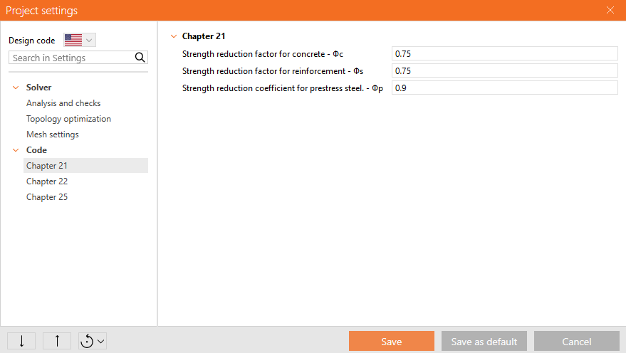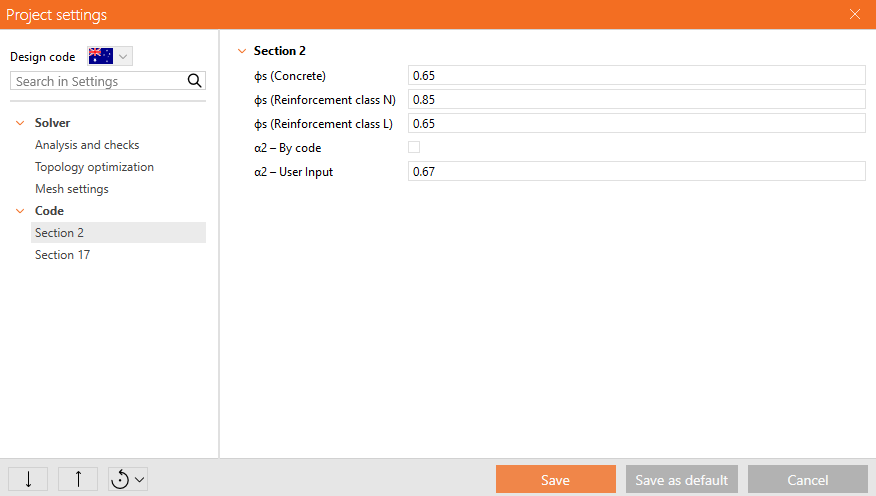 Values of stress reduction factors are prescribed in AUS 3600 Cl. 2.2.3. The default values for concrete and reinforcement are set according to Table 2.2.3