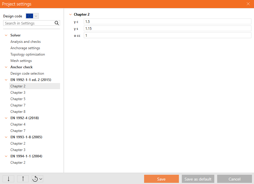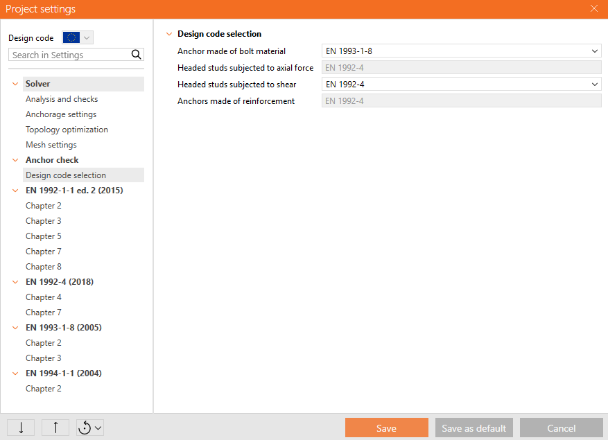Anchors are checked for normal stresses in a similar way to reinforcement, where the limit value fsy,lim is determined.