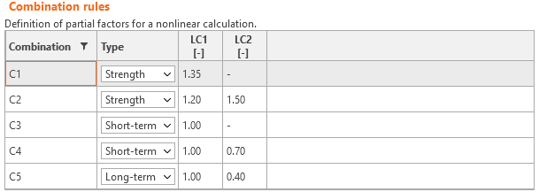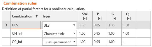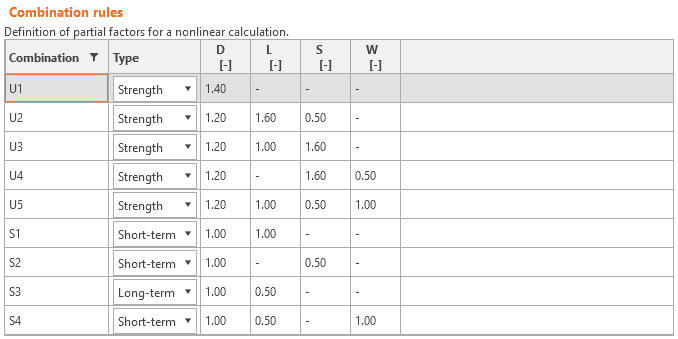 Load factors for Strength combinations shall be defined according to AS 3600 Cl. 4.2.2. Load factors for Serviceability combinations shall be determined according to Table 4.1. For all templates, load factors are already predefined.