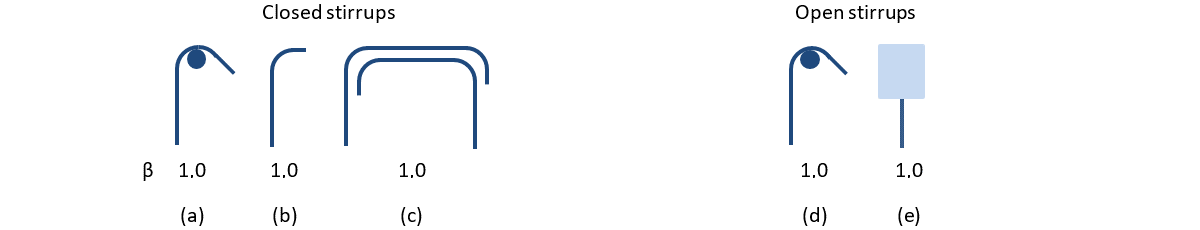 The anchorage coefficient for stirrups is always - β = 1.0.