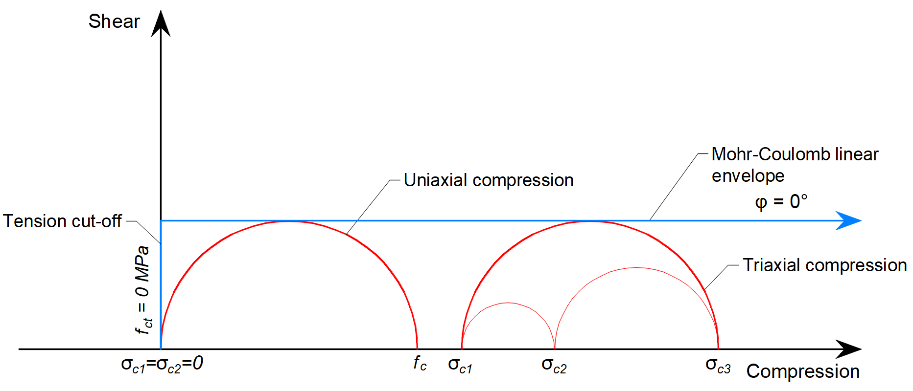 \[ \textsf{\textit{\footnotesize{Fig. 6\qquad Mohr's circles for concrete}}}\]