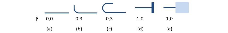 The available anchorage types in CSFM include a straight bar (i.e., no anchor end reduction), 90-degree hook, 180-degree hook, perfect bond, and continuous bar. All these types, along with the respective anchorage coefficients β, are shown in Fig. 46 for longitudinal reinforcement. The values of the adopted anchorage coefficients are derived from the comparison of the equation from section ACI 318-19 25.4.3.1 and equations taken from section ACI 318-19 25.4.2.3. It should be noted that, in spite of the different available options, CSFM distinguishes three types of anchorage ends: (i) no reduction in the anchorage length, (ii) a reduction of 30% of the anchorage length in the case of a normalized anchorage, and (iii) perfect bond.