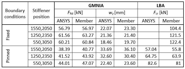 The results of stiffened beams were compared also to ANSYS models.