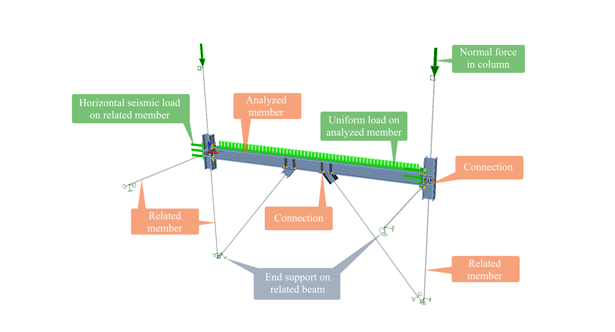 • Related members are loaded by standard loads and end internal forces.
